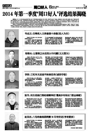2014年第一季度“周口好人”评选结果揭晓