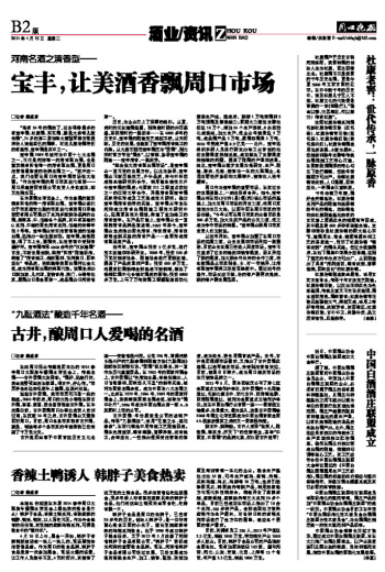 从近年开始,宝丰酒业加强了在周口市场的拓展力度,业务发展和市场开拓一路强劲,目前业务发展已经进入深度市场。宝丰不仅重启了过去的物流和销售渠道,而且开拓了新的渠道,加大新合作伙伴的合作力度,将各款酒品从市区到县、乡、村一字铺开,让清香型宝丰酒真正走进百姓家中。通过近年的运作,市场反应不错,老的客户群再次集结,新的客户群发展迅猛。
