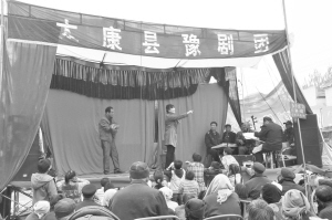 近日,太康县成立了太康县豫剧团。图为太康县豫剧团在独塘乡演出。