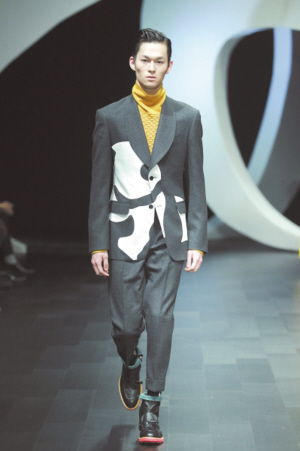 秀场:BeautyBerry·王玉涛男装发布会灵感来自东方神秘国度的友好使者的问候,无论是他憨态可掬的神态,还是自身标志性的色彩,都是BeautyBerry在本季将要呈现的精彩。将黑白两色通过精巧比例搭配,再现经典,高腰廓肩的设计是下一季展现男士风采的风向标;用高品质黑白面料材质相拼,结合现代的撞色线条处理,都是在勾勒男士粗狂线条。(李丽)