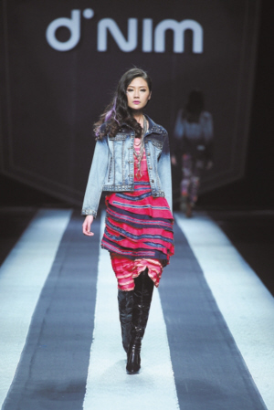 秀场:首次登上中国国际时装周舞台的美国品牌d’nim携手十年后再次发布牛仔装设计作品的著名设计师陈闻,以“画牛仔”为主题,为观众展现了一场色彩的牛仔盛宴。
