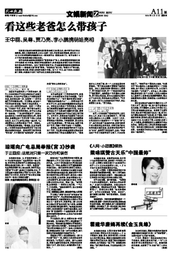 而华谊兄弟执行总裁王中磊的正太儿子已经8岁了,跟父亲一样,这个孩子也相当出色与沉稳,王中磊曝料,以前他工作很忙与儿子很少有单独相处的机会,但是录了几期节目后,现在孩子特别喜欢与他在一起,前不久他们俩还单独去看了场电影,吃了顿饭,那种感觉非常棒。而没有出现在现场的吴尊女儿,也透过VCR与大家见了面,小姑娘大约有4岁,十分漂亮。吴尊提起自己从隐瞒孩子的出生开始,到现在把女儿带出来亮相参加综艺节目,表示自己觉得这也是一次难得的影像纪录,他希望孩子将来长大可以看到她与爸爸在一起的样子。 (张漪)
