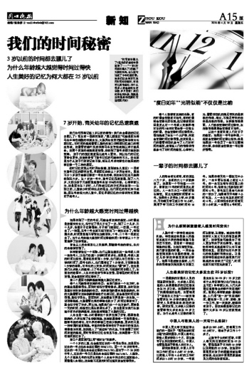 一项最新的对退休人员的调查研究表明,大多数人回忆起的人生里最美好的记忆都发生在25岁之前。这项研究开辟了所属领域的先河,主要利用了“自然主义方法”——被试者被要求在30分钟内描述自传,研究人员搜集自由流动的故事。研究发现,大多数人记得的重要事情大多发生在25岁之前。为什么成年人记得的事不是发生在30~70岁?25岁之前有什么特别事情让他们如此念念不忘?科学家认为,人们大多通过值得眷念的事件来权衡时间。美国心理学家威廉·詹姆斯称,人们用“第一次”来权衡时间,譬如第一天上学、初吻、第一份工作、第一次旅游,婚姻和有孩子。而这些最值得记忆的事件大多在25岁以前就完成了。