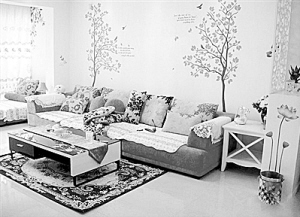 “无人小街子”说,因为客厅墙壁上是两棵树的图案,因此家里的客厅在刚装修完毕的时候,就像个大大的森林。当进深1.1米、总长近3米的玫红色沙发搬进客厅的时候,第一个感觉就是“森林里有了主人的宝座”。