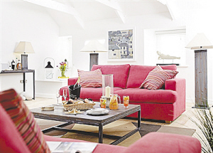3.粉色沙发、亮黄沙发,再配上彩色小花朵的抱枕,整个空间充满了年轻朝气。在一个空间的色彩搭配上素色与跳色要搭配协调,在这个空间中,地毯、挂帘、书架、单椅等都是黑白的基色调,因此配上两个彩色沙发就是点睛之笔。 (新民)