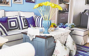 蓝与白鲜明而巧妙的搭配能让置身其中的人倍感舒适,活泼的柠檬黄和生机勃勃的绿色带来了清新、现代的视觉观感。颜色和图案的混合可以大胆些,配上色调柔和的墙面、木地板和白色家具做基础,恰到好处,十分和谐。