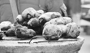 摊主是个四十多岁的男人,胖胖的,脸上常挂着笑容。他的红薯都是精心挑选过的,个头儿匀称,外皮光滑,他的手艺又好,我女儿最爱吃他烤的红薯了。