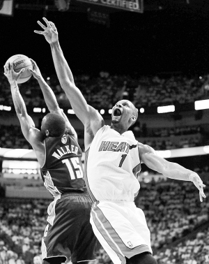 热火“三巨头”共砍下63分,其中“小皇帝”勒布朗·詹姆斯拿下了27分9个篮板,德维恩·韦德23分5次助攻,克里斯·波什13分。
