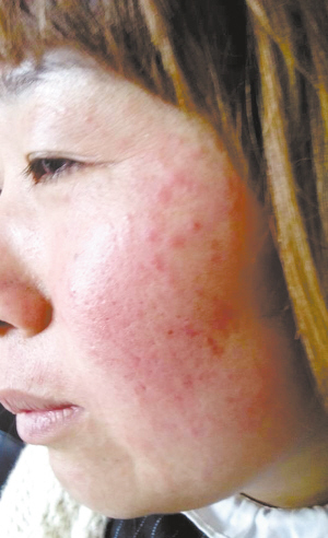 本报讯 “美容就是为了美,但是我们6个人全部出现化妆品过敏症状,长出了一脸红痘痘(如图),美容店和化妆品厂家却对此百般推诿。”4月21日,郸城县6位女士联名向本报反映,她们在郸城县商贸城南门一家美容美体养生会馆美容后出现了“后遗症”,至今没有为自己讨到满意的说法。据悉,郸城县消协已介入调解。