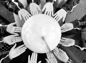 4月22日是第45个世界地球日,今年的主题为“珍惜地球资源 转变发展方式——节约集约利用国土资源共同保护自然生态空间”。河北邢台幸福源小学的同学纷纷伸手触摸“地球”,并以独特的主题创意和自创画刊等形式表达他们对地球的珍爱和呵护。黄涛 摄