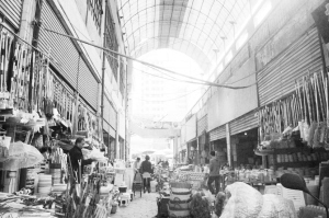 记者走访发现,市场内露天的道路上,几乎没有占道经营的摊贩;而搭有风雨棚的小通道,占道情况比较严重。