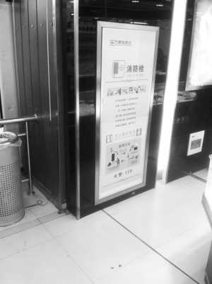 在另外一家商场,记者看到两部的电梯之间的液晶电视,播放着关于消防的公益宣传片。而各楼层的扶梯口也都贴有消防宣传图片。此外,每层都安装有消火栓、湿式喷淋系统、自动报警系统、消防广播系统等,而每个柜台前也都放置着灭火器箱。