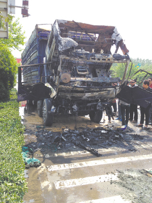4月29日上午,市民王先生向本报热线反映,在宁洛高速周口出站口南100米处一辆满载麦子的大货车发生自燃。记者赶到现场,看到一辆装载着麦子的大货车停靠在道路东侧,货车的整个车头已经全部烧毁变成了空壳,地面上满是灰烬和一些散落的小麦(如图)。据了解,此次大货车自燃并未造成人员伤亡,自燃原因也正在调查中。