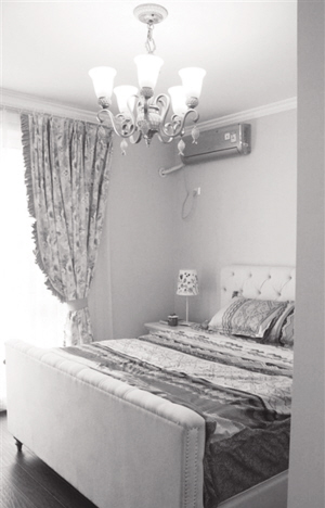 主卧拥有着女主人喜欢的清新美式风格,家具和灯饰都是淡雅清新的感觉。窗帘和床品的用色虽然比较跳跃,但很耐看,给整个卧室带来一股清新的美式风。(李可)