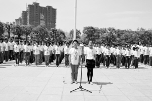 本报讯 “ 天地玄黄,宇宙洪荒。日月盈昃,辰宿列张。寒来暑往,秋收冬藏 ……”5月6日上午,在沈丘中华槐园千字文广场,沈丘县东城办事处1000多名儿童齐诵《千字文》,作为对中华槐园开园两周年的献礼。