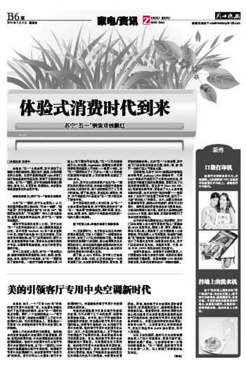 本报讯 近日,一个“只售5399元”的美的客厅专用中央空调广告,在全国各种媒体进行了铺天盖地的轰炸,成为“五一”期间的焦点话题。同时,一个全新的概念——“客厅专用中央空调”,突破性地颠覆了人们对中央空调的认知。武汉某团购会上,更是爆出一天劲售110多宗美的客厅专用中央空调订单的新闻。