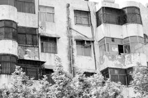 5月7日,七一东路与汉阳路交叉口附近一小区临街楼外墙由于长期风吹日晒,墙体大面积损毁脱落,希望能及时整修。晚报记者 金月全 摄