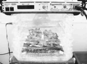 蔬菜“大棚”的顶部配有红、蓝和绿3种颜色的LED灯,由计算机控制,为作物提供需要的光照。在附图中射下的是红光,这使生长箱看起来像是用粉色薄纱制成的。