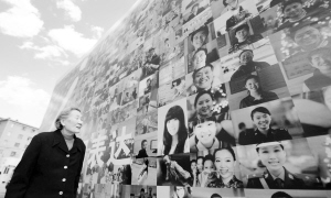当日,沈阳推出“爱上微笑的沈阳”巨幅笑脸墙,以迎接5月8日世界微笑日。笑脸墙全长350多米,利用工地围档沿街展示市民、摄影师拍摄的1000多幅“微笑”作品。新华社记者 杨青 摄