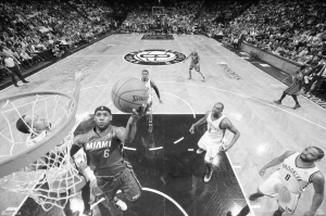 热火全队半场命中率高达63.2%,詹姆斯一人独得25分,但卫冕冠军也只不过领先网队7分。第三节詹姆斯又是一人拿下15分助热火队保住了3分的优势。