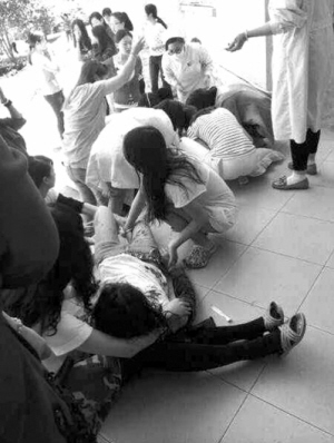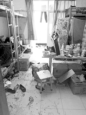 据目击者称,先是听到6栋216宿舍里传来打骂声,不久216宿舍门被打开,并传出了呼救的尖叫声。“打开门就看到有个女的从宿舍里面跑出来,她头部受了伤还流了很多血,向对面的215宿舍敲门求救。”