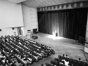 本报讯 5月14日上午,张伟先进事迹报告会在周口人民会堂举行。报告团成员为市直单位800多名领导干部动情地讲述了张伟甘守清贫,致力教育的先进事迹(如图),引起全场听众的共鸣。