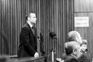 当地时间5月14日,皮斯托瑞斯在法庭被告席上。当日,“刀锋战士”奥斯卡·皮斯托瑞斯去年情人节枪杀女友案的庭审焦点集中在“焦虑症”和精神疾病上,豪登省高等法院裁定,将被告送往精神病院观察,下次正式开庭时间为5月20日。新华社发