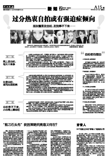 一位传播学教师表示,频繁晒自拍照的人,也不乏出于无聊或者满足虚荣心的目的,过于频繁地自拍和晒照恰恰是内心空虚的表现。