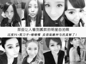 自媒体时代,用微信晒自拍的人越来越多。但却有专家把自拍与精神疾病联系起来,并且提出,常常在网上晒自拍的人,在某些情况下可能有病。太爱晒自拍,真的是一种病吗?明星们的自拍图 资料图片