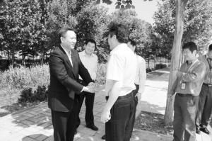 5月14日上午,华耀城投资(周口)有限公司总裁宋晖一行来到华耀城项目东新区指挥部、华耀城办事处等地慰问一线工作人员,除向他们送去水果、保温杯等慰问品外,还同一线工作人员面对面谈心。晚报记者 张志新 摄