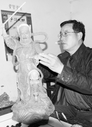 本报讯 具有“豫东大型雕塑第一人”之称的郸城雕塑大师张城镇,日前应邀为台湾玄元宫创作王灵官泥塑像。这标志着其作品首次“走进”祖国宝岛台湾。