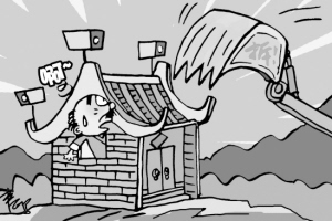 一个农民,为保护自己的祖屋不被强拆,居然要花如此大的代价配备监控摄像,这原本已让人感到悲哀;更可悲的是,即便如此,他还是没能保住祖业,因为有人使了江洋大盗的手法。《物权法》对民宅业权的保护规定,一清二楚;近年中央又三令五申,未与业主达成补偿协议,不得强拆。可是,在某些地方,公开的强拆少了,但暗地里的半夜偷拆、“误拆”等把戏却不断上演。显然,威严的法律法规,到了一些地方就变成了可任意亵渎的一纸空文,而当公权力祭起江湖下三烂的手段时,百姓又怎得安生?