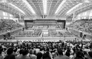 本报讯 5月19日下午,周口市直机关第二届职工运动会开幕式在市体育馆隆重举行(上图)。来自市直机关、中央和省驻周单位的2002名职工将在未来10天时间里鏖战赛场,争夺篮球、网球、乒乓球、高尔夫球、太极拳(剑、扇)、拔河、健身舞蹈等18个项目(其中,成年组设12个比赛项目,老年组设6个比赛项目)的冠军。
