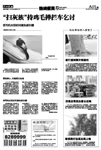 “扫灰族”持鸡毛掸拦车乞讨