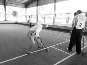 在门球赛场,记者看到很多老年观众在默默地观看。参赛者打出一个漂亮的击球后,草儿会轻轻地“鼓鼓掌”,参赛者偶尔也会与身边的人小声地交谈几句。外行看热闹,内行看门道。记者发现,很多观众在看比赛时都若有所思,有的还时不时地用手比划着或者摇摇头。但当一位选手出现一个致命失误时,不少观众会说:“本来是稳赢的比赛,怎么能把球打出界呢?这一下可好了,又有悬念了。”虽然这位选手出现重大失误,但队友没有责怪他。队友视乎并没有觉得这是一个致命的失误,大家还在各自的位置继续比赛。