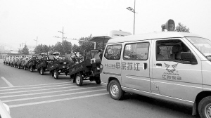 5月21日下午,记者由中州大道自南向北行驶时,见对面过来一辆面包车,后面拖着一条由十多辆三轮车组成的长长的尾巴,像一列“小火车”行驶在公路上。这“奇怪”的车队也引起了过往车辆的注意,司机们纷纷投来惊讶的目光。晚报记者 朱东一 摄