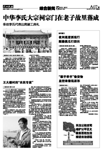 本报讯 日前,中华李氏大宗祠宗门在老子故里鹿邑落成。来自台湾、香港、陕西、江苏、福建、湖北、河北、河南等地的近200名李氏宗亲代表、各界嘉宾出席了竣工典礼。