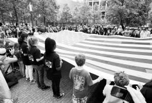 当天,纽约“9·11”国家纪念博物馆正式对公众开放。为了纪念这一日子,纽约的志愿者将一面从“9·11”废墟中找到并修复的巨幅国旗移交给“9·11”国家纪念博物馆作永久保存。