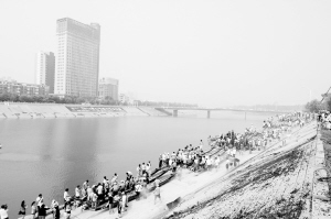 5月22日,在周口市区沙颍河中州大道至八一大道段的河面上,24艘龙舟在震天的鞭炮声中相继下河。周口首届中华龙舟赛将于5月27日至29日在沙颍河中州大道至八一大道段的河面举行,届时会有龙舟点睛等大型水上项目表演。晚报记者 金月全 陈星宇 摄