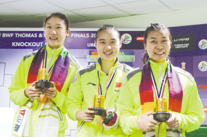 新华社新德里5月24日电 24日,随着中国羽毛球女队在印度新德里以3∶1战胜日本、取得尤伯杯两连冠后,领奖台上,三张年轻的面孔笑容格外灿烂,她们是首次代表中国队征战尤伯杯的三朵“小花”——22岁的女双组合包宜鑫、汤金华,20岁的女单选手孙瑜。随着中国队的成功卫冕,她们也登上了中国羽毛球队世界冠军榜。