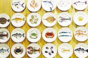 拥有俏皮海洋生物元素的瓷盘,或罗列在一起装饰于墙面,或在餐桌上摆放整齐,让人仿佛置身于海风习习的海滨别墅,享受美味的海鲜大餐味道。