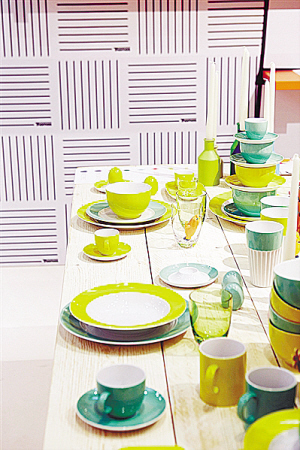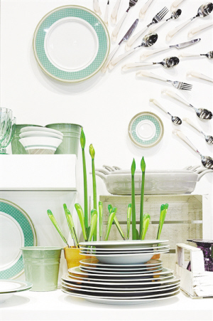 厨房里的绿色餐具给人一种鲜活和清爽的生命力,尤其是夏天这种鲜嫩的颜色给人异常温润和舒适的感觉。大面积的嫩绿色会单调乏味,搭配其他餐具或者餐厅装修的背景要注意层次感,运用嫩绿、果绿、茶绿等不同层次的绿色调,使餐厅彻底清新活泼起来。