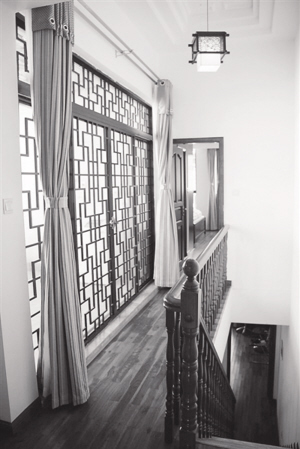 麦女士的爱人爱好书法,因此,在二楼设置了开放式书房,陈设两米多长的大桌,桌子一侧是拱形的大窗,窗外绿植摇曳,让人不禁想起电影《卧虎藏龙》中的官府大宅。