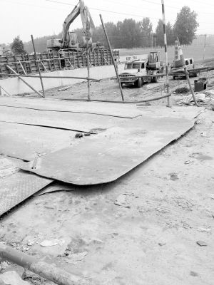 5月26日10时许,记者来到康楼桥,看到旧桥已经被拆除完毕,新桥正在紧张施工。在施工现场西侧搭建了一座临时的便桥,其桥体是钢架结构,桥面是用钢板铺设而成的。桥面上有一块钢板翘了起来,目测钢板翘起约有5厘米(如图),车辆经过此处都会小心翼翼。“我每次开车经过这里都得小心慢行,怕一不小心钢板会把车胎划破。”一位私家车主说,这里是周口市区到西华的必经之路,平时车流量非常大,为了安全起见他希望有关部门能尽快将隐患排除。