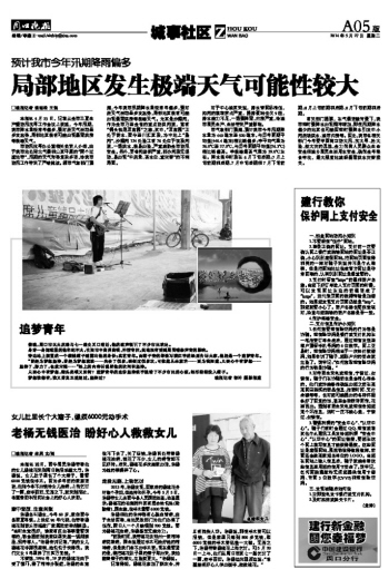 老杨无钱医治 盼好心人救救女儿