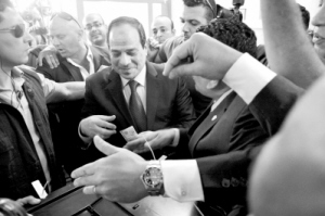 塞西26日在开罗投票后,向现场的支持者挥手致意,支持者们则高喊:“总统,总统!”
