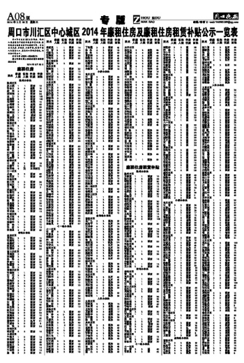 周口市川汇区中心城区2014年廉租住房及廉租住房租赁补贴公示一览表