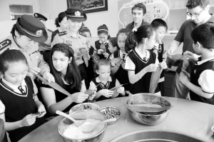 5月29日,青岛市沙子口公安边防派出所与青岛白珊国际学校联合开展“中国名俗体验日”系列活动之“迎端午 包粽子”,干警与中外师生一起包粽子,感受和体验中国传统文化。新华社记者 李紫恒 摄