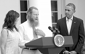 31日,奥巴马和伯格达尔的父母共同在白宫见媒体记者。这对夫妇因其他行程在华盛顿,而后接到奥巴马告知儿子获释的消息。
