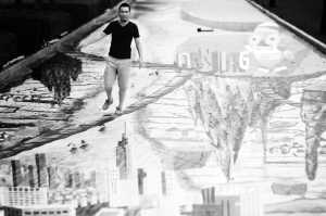 当日,一幅以《青春的律动》为主题的巨型3D地画在中国传媒大学南广学院星光大道亮相。该幅3D地画以雪山、长江、油菜花、跑道、悬浮石、南京青奥会吉祥物砳砳、紫峰大厦城市建筑群为主要画面元素,地画长370米,总面积达到2600多平方米。地画由主创杨永春和团队近20名画家耗时半个多月绘制。杨永春说:“这幅3D地画是创作团队献给青奥会的一份贺礼,希望借此传递年轻人勇于拼搏、积极向上的正能量。”新华社记者 沈鹏 摄